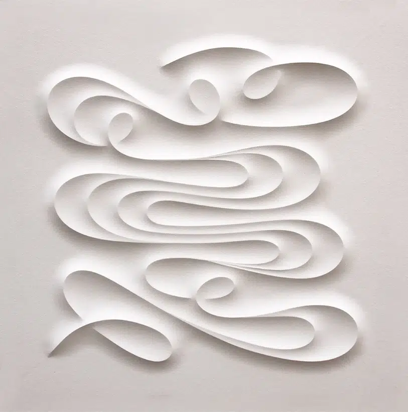„…curled bodies which get twisted, raised, confused, stretched and coiled in a dance of lines, in a authentic spatial choreography. They are enchanted snakes too, spirals of smoke drawn by an idle cigarette, solidified acoustic waves, colored ribbons thrown in the air by some invisible girl …“
